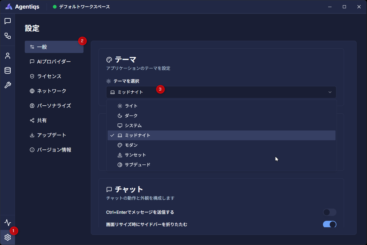 このページでは、Agentiqs の表示テーマ(配色)を変更する手順を説明します。