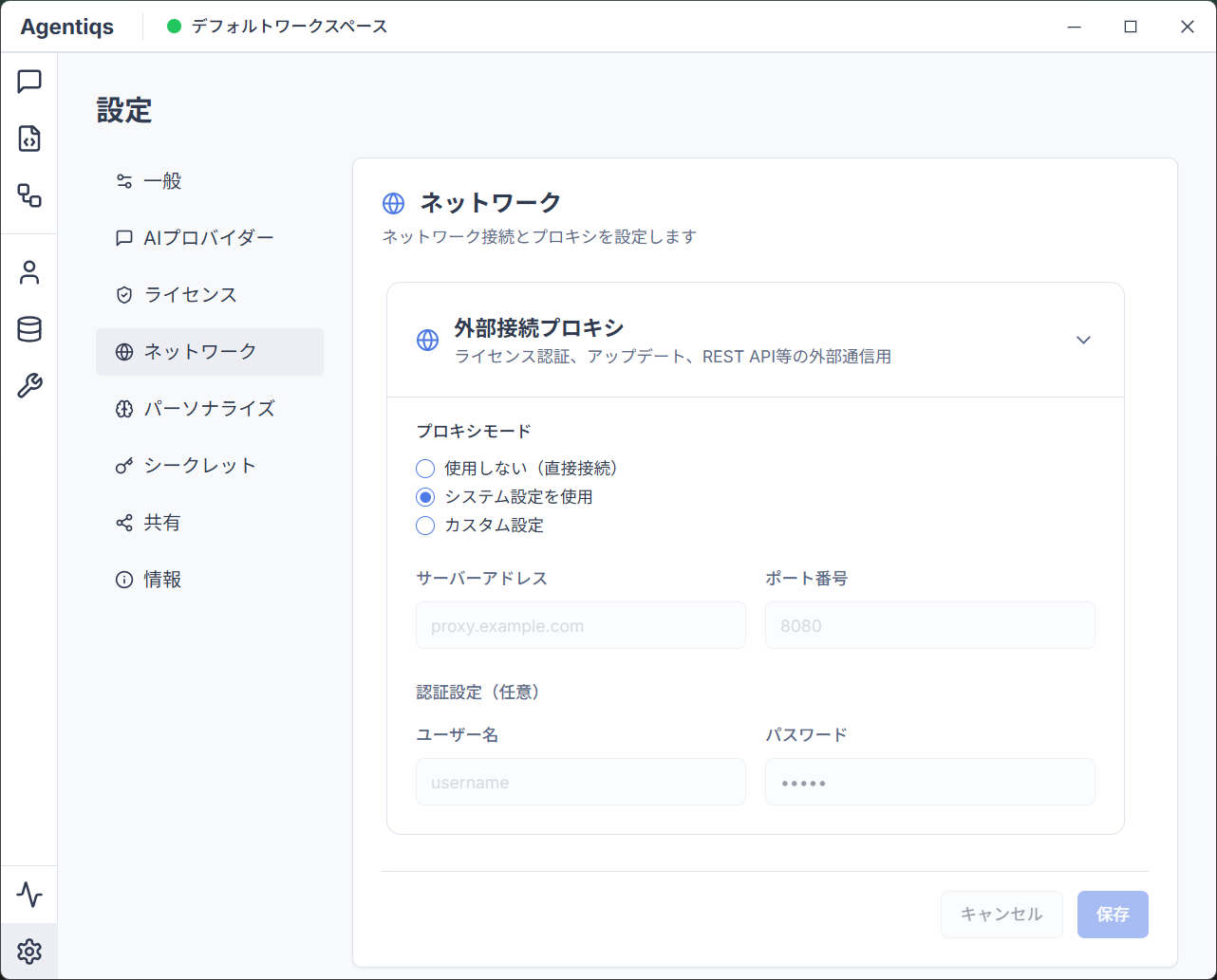 Agentiqsで利用するプロキシを設定できます。